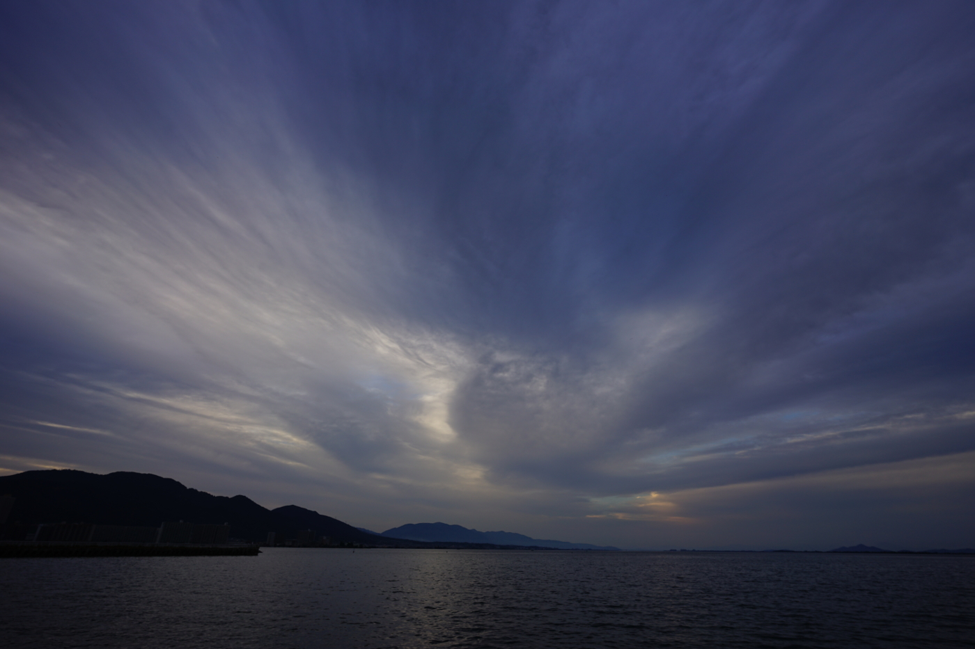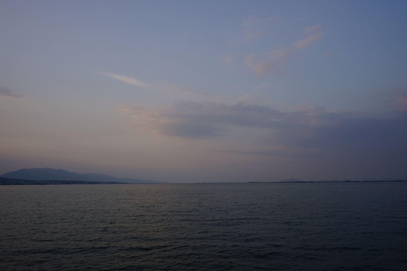 僕の経験する時間は・・・・琵琶湖の湖畔に生まれ育ってから81年が過ぎた。琵琶湖は人が名付けた湖の名称だが人類の歴史よりも遥かな時間と歴史は例えようがない・・・湖畔に暮らす者にとって切り離すことの出来ない琵琶湖の存在は意識とは関係ないところで作用しているのだと思った。26歳の時に飛行機の操縦を習い始めたのも琵琶湖が関係しているのではと僕が飛行機を操縦するのは手段であって目的は琵琶湖を記録するために琵琶湖がそうさせたのではと思う時もある・・・総合開発が始まる前から空から琵琶湖の写真を撮ったのは、自分の意識からだろうかと考えた。青年会議所で琵琶湖の映画を制作した事も琵琶湖の時間に組み入れられていたのではと思った。毎日の湖岸ポタリングも朝の散歩では三井寺の展望台から眺める琵琶湖も、僕に組み込まれている琵琶湖の時間ではないのか・・・そして夕食後、今日も琵琶湖へ向かうと素晴らしい夕景を見せてくれた。僕は毎日、琵琶湖が作り出す時間で動いているのは確かなことだと頷いた。