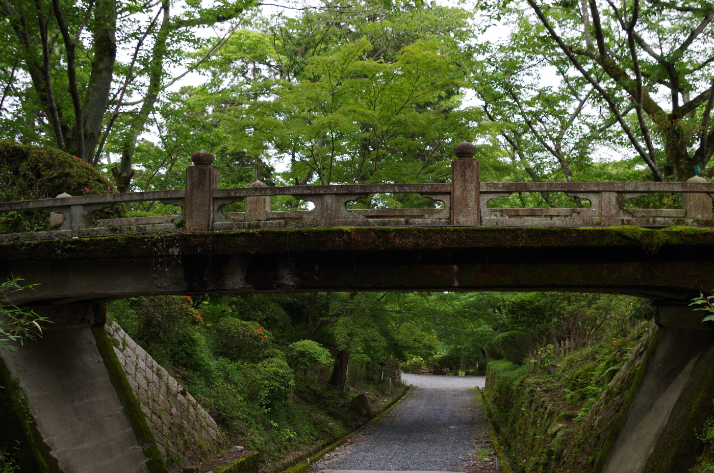 写真の石橋(コンクリート)は三井寺の境内に掛かる橋で最近の映画「るろうに剣心」で使用された。