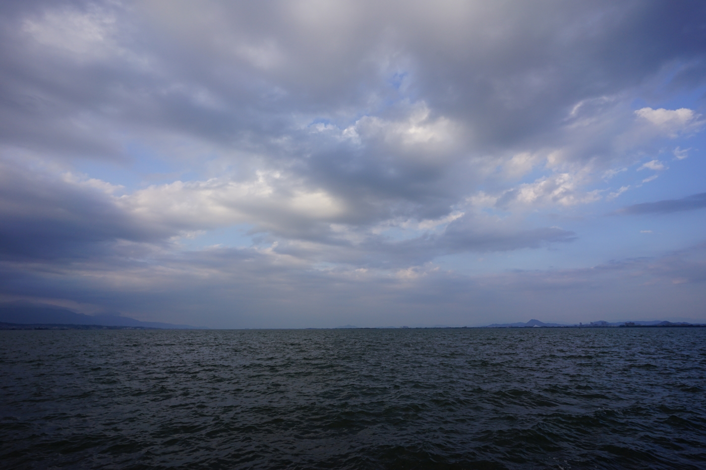 今日の琵琶湖は雨雲が垂れ込め重い空気は流れず留まっている、水位は少し上がったようだ、琵琶湖は河川から流れ入る水を余裕をもって貯水してくれているから安心だ。琵琶湖に感謝、感謝・・