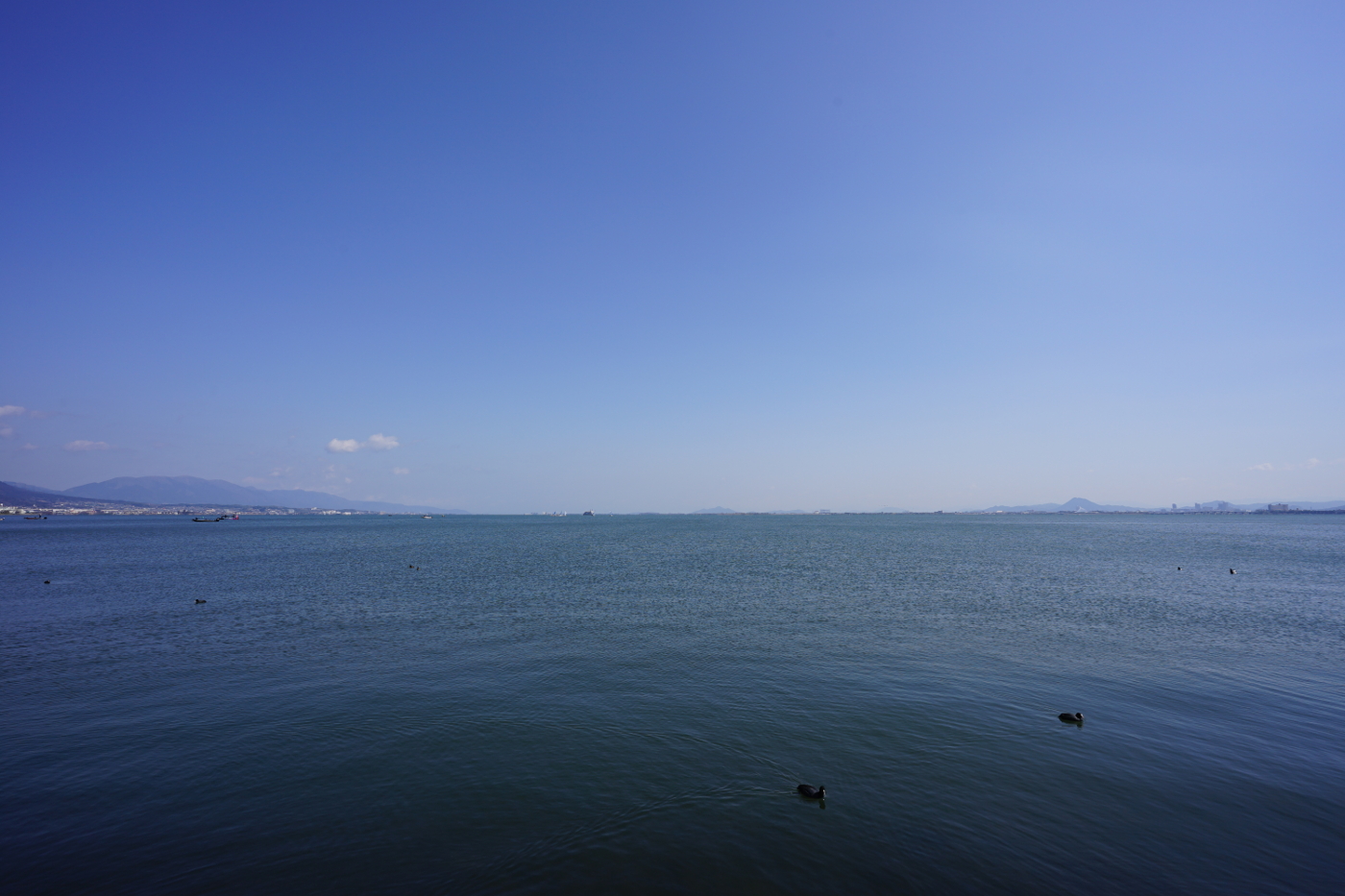 長等公園の高台近くには近松寺がある、その前から琵琶湖を見ると湖岸にはハコが衝立の様に琵琶湖の眺めを邪魔していた。