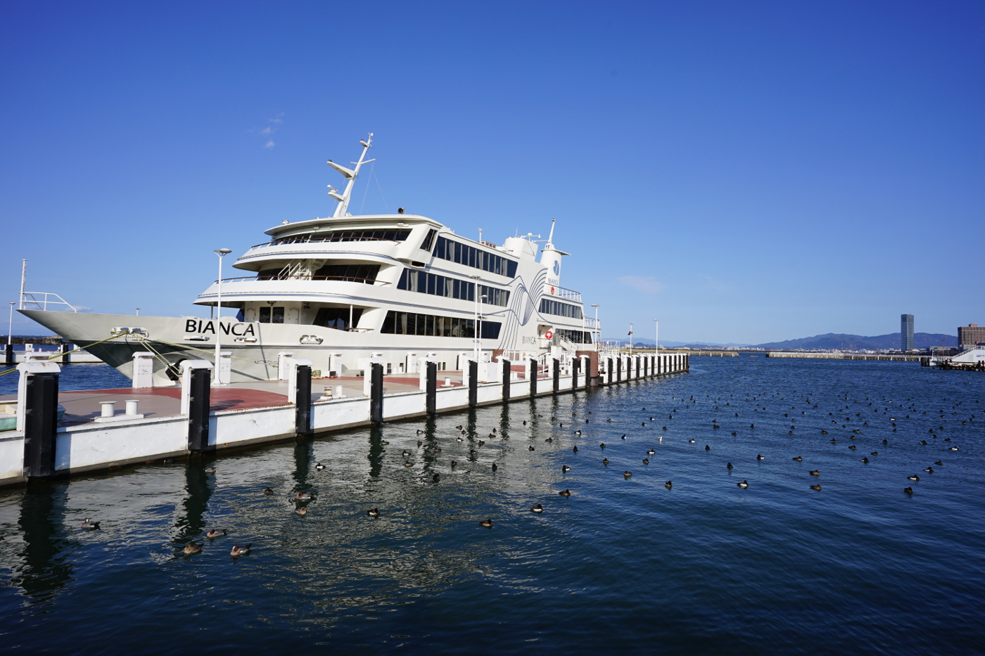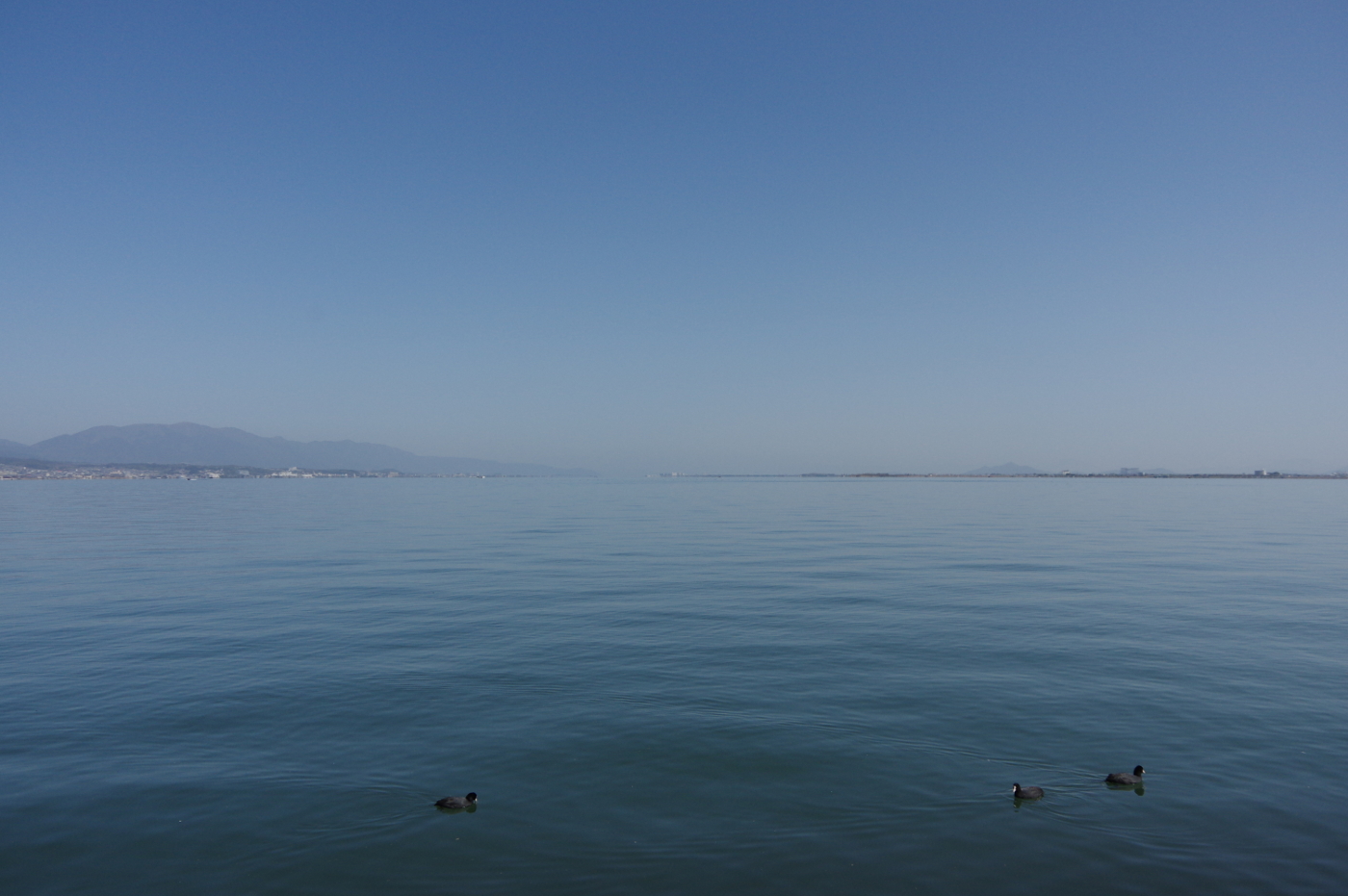 春うらら・・とまでの陽気を感じないが好天に恵まれた、今日の湖岸は家族連れが目立った。そして犬を連れた人が多いのは最近の傾向かと犬の種類の多さにも感心した。服を着せられている犬も多く見かけた。マナーは良い方ではと最近、犬の糞を湖岸では余り見かけないからだ。子供の頃に見かけた犬は、秋田犬、柴犬、スピッツで雑種犬が殆どだった、そして飼犬と野犬も自由に歩き回っていた時代だ。犬の糞の始末する人も見かけなかった、犬の放し飼いが多く自由に好きな処で用便をしていたから、目にすることもなかったのではと長閑な戦後の時代を思い出してきた。浜大津港には定期航路の船が多く停泊していた、貸しボートやヨットが湖面で多く見られた。黄昏れのショーボートとしてハリ丸が周航していた頃の賑わいを知っている僕には、休日でも人出の少い浜大津港に寂しさを感じた。