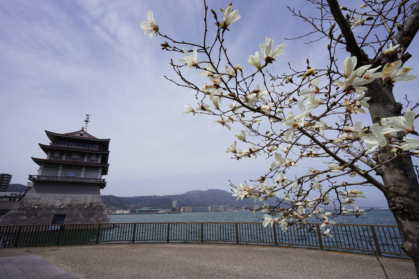 春になれば花は咲く・・自然の営みは正常に続いているように見えるが温暖化による気候変動で季節の時間に狂いが目に見えはじめた。ホモ・サピエンスの社会はコロナ禍の影響で大きく変わらなければ未来は無いと思った。でも期待するほどの変化はなさそうだ。軍縮から軍拡へ舵を切る国が増えていると伝えるニュースを見て空しくなるばかりだ。沈んだ気分を少しでも明るなりたいと、今日も湖岸ポタリングへ出かけた。琵琶湖は深呼吸した所為で水が綺麗に見えた。水鳥もオオバンとヒドリガモが少し残っているぐらいで湖上は寂しくなった。打出浜からにおの浜湖岸のオオシマザクラやソメイヨシノの蕾は大きくなったが開花は少し先だ。文化館側の木蓮の白い花が咲き始めた。春の観光シーズンが始まると、人の往来も多くなり心配だ、でも京都ほどオーバーツーリズムにはならないからと湖畔の静かな佇まいを見た。