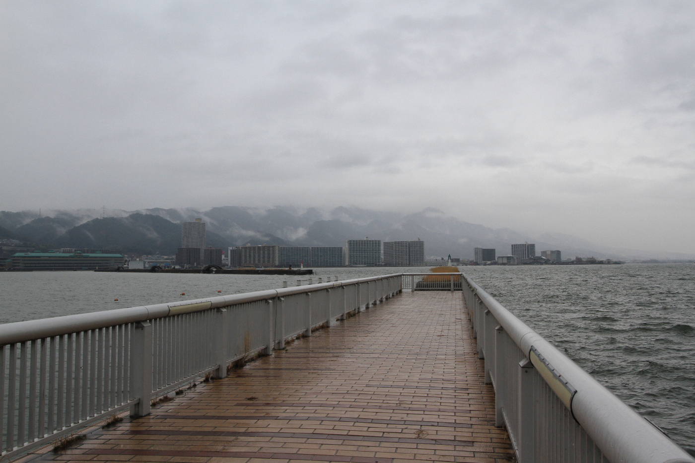 低気圧と寒冷前線、どちらが好きかと問われれば、僕は寒冷前線の方が好きだ。通過するのも早く、天候の回復も早い、今回の低気圧はスピードも遅く夕方には雨も止むと思っていたのに午後4時を過ぎても雲は垂れ込めたままだ。レインギアに身を固め自転車で琵琶湖岸へ向った。浜大津港ではミシガン号が出港して行く姿を久しぶりに見た。ミシガン号には大きな看板?に第66回びわ湖開きと書かれているのを見て、中止ではと思っていたびわ湖開きが行われる事を知った。でも未だにマスコミ報道はないのはコロナ禍で静かに自粛モードで行われるのかとミシガン号を見送った。琵琶湖に突き出た長い突堤も雨で人影もなく、僕ひとりが琵琶湖雨情を楽しんだ。雨の日は特に海のように感じる琵琶湖は僕にとっては海そのものだと写真に撮った。ただ其れだけの事がうれしいと感じた。