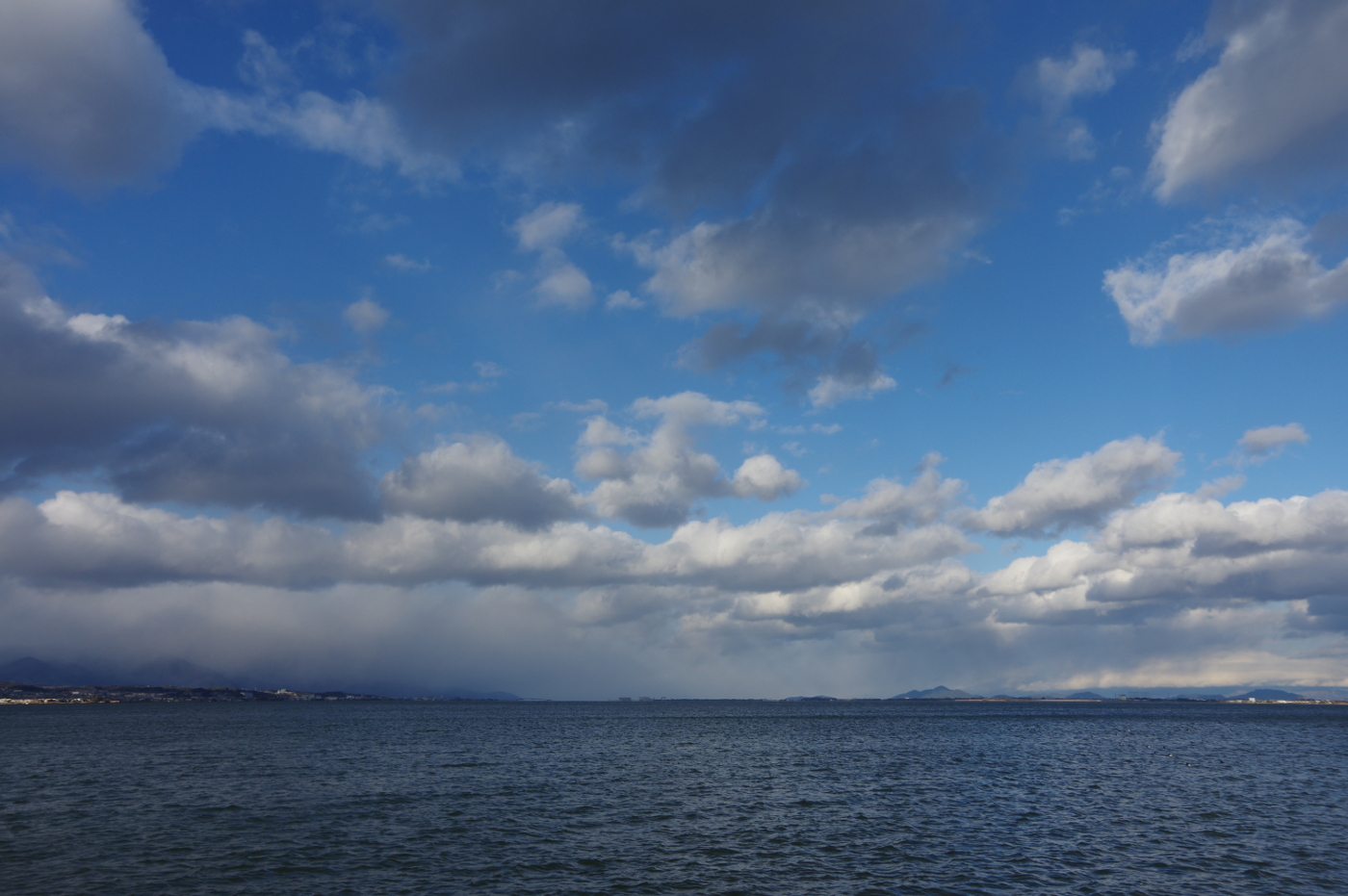 雨の降る前の琵琶湖を眺めていると25年前に見た映画ビフォア・ザ・レイン(監督ミルチョ・マンチェフスキ)をおもいだした。題名の和訳が雨の降る前に、だったからだ。映画は映像が美しく音楽も素晴らしかったと記憶を辿るも筋書きは遠い記憶の彼方へと消えた。ただ天気予報が今夕から雨が降ると言っていたから安易にビフォア・ザ・レインを思いついただけと水気を含んだ空気の所為で春霞がかかった琵琶湖の風景を打出浜から楽しんだ。