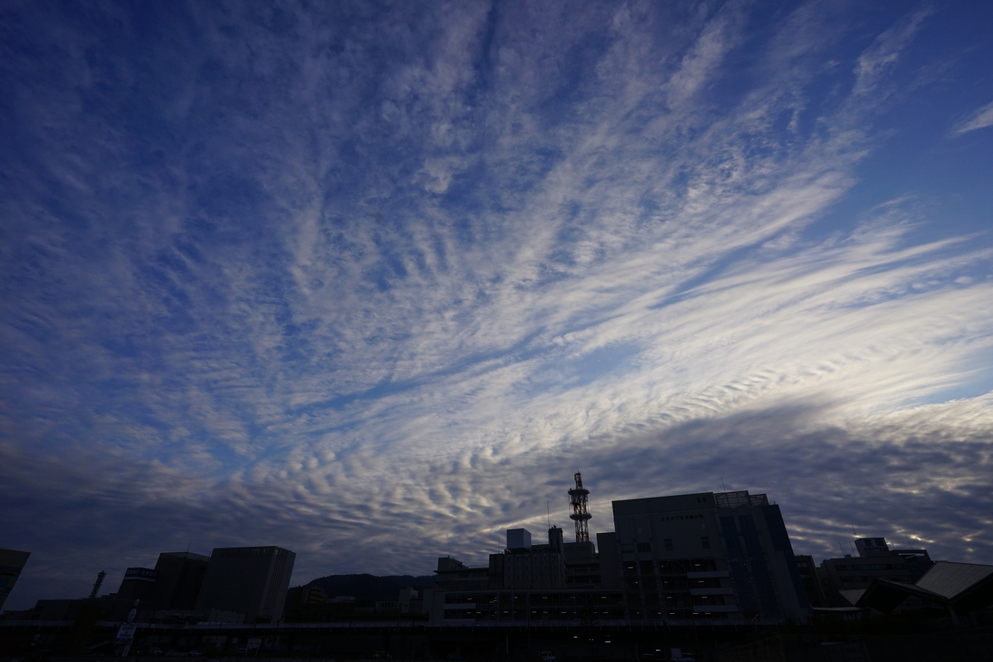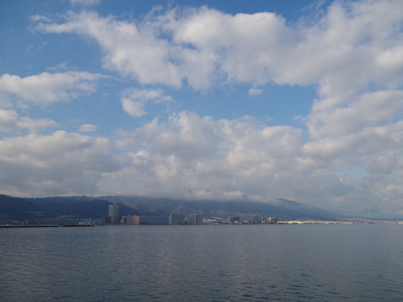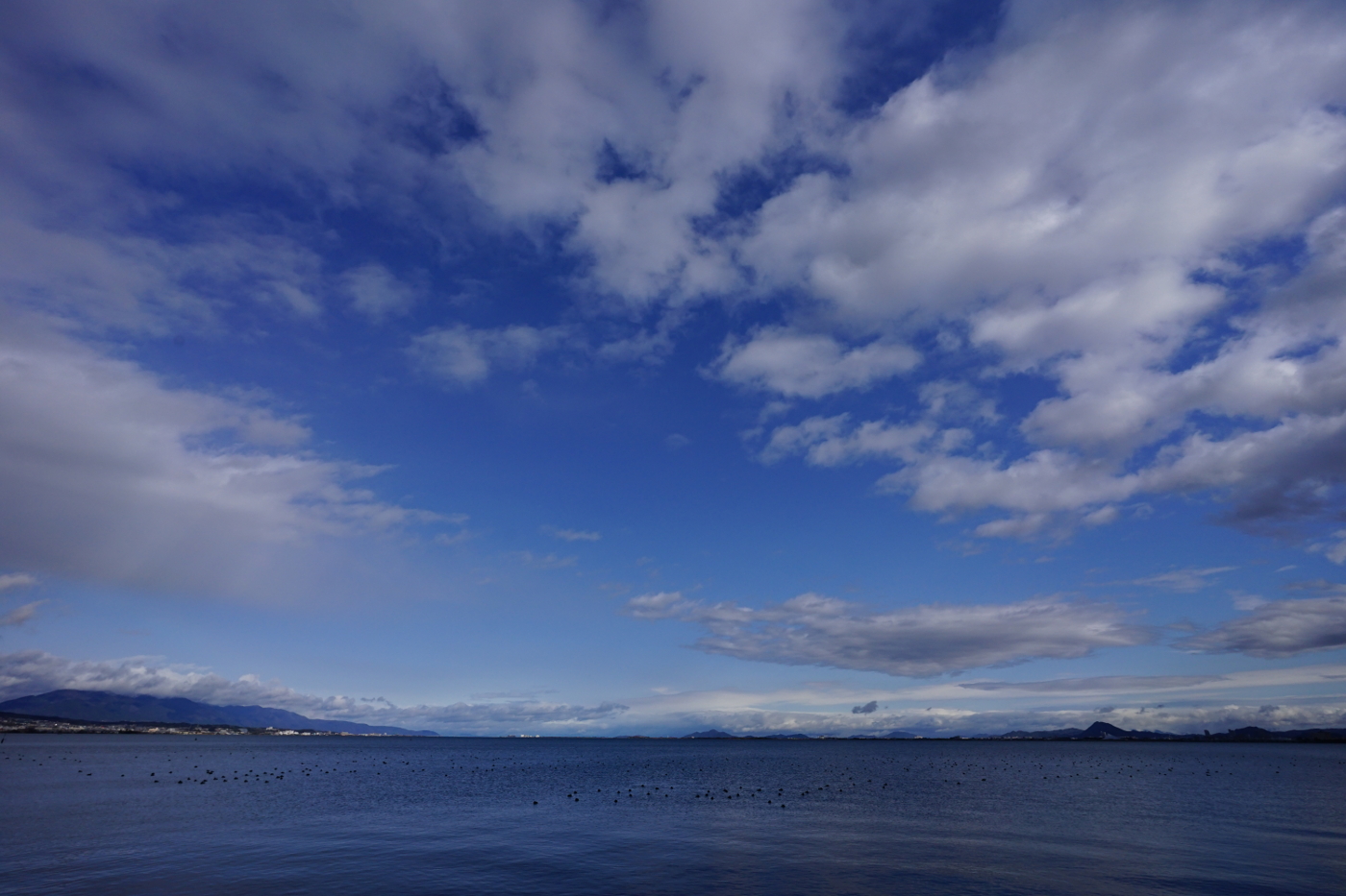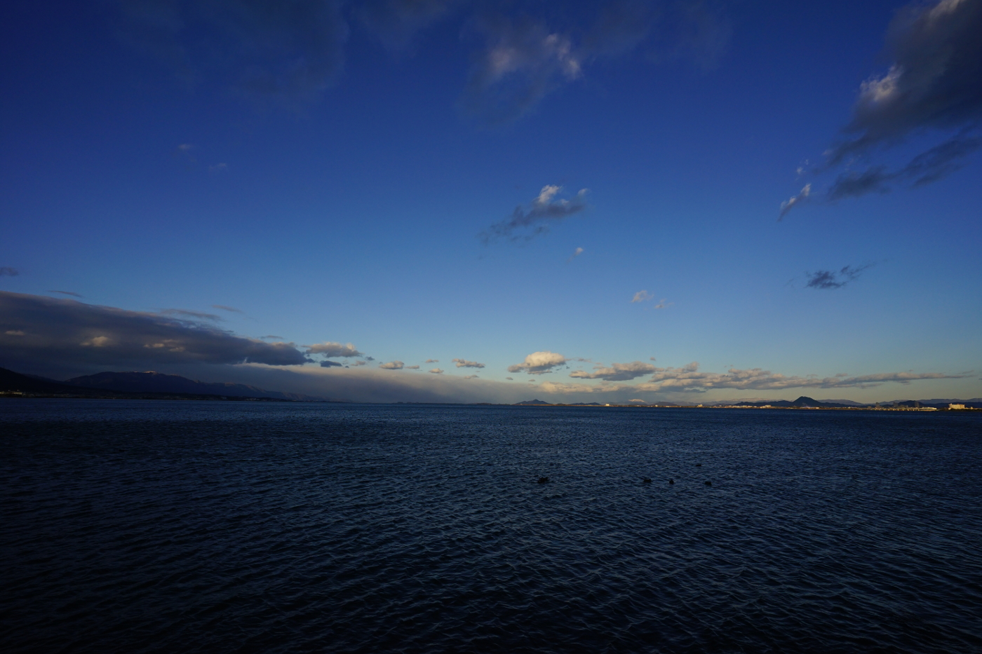 夕方、浜大津港で三十分ほど空の変化を楽しんだ。上空の雲が移動する速さに驚いた。僕が二百メートル移動する間に天空の様子がすっかり変化しているのに驚いた。大空にエアーブラシで大きな雲を描けるのは気流を自由に扱える天才が空に住んでいるのではと思いながら写真を撮った。