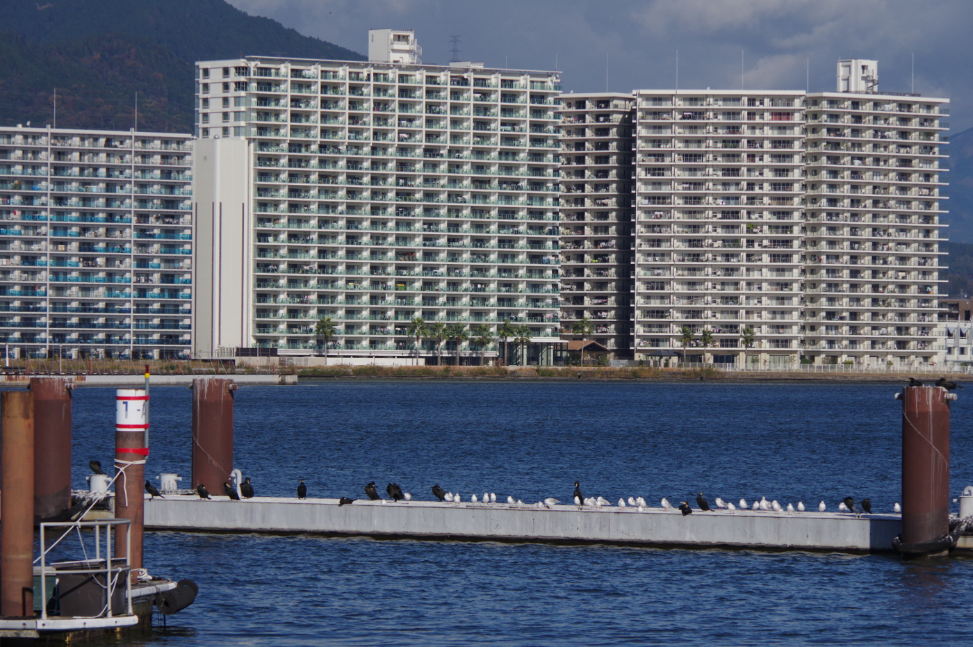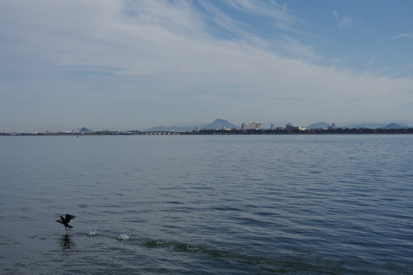 打出浜から三上山(近江富士)を眺めていると、本当に近江富士と呼べる日本的風景が広がっている訳ではないと外国の風景ではと東方を見た。三上山と高層集合住宅群が近代都市の存在感を示している光景には少し違和感を憶えた。草津だけではない、毎日、三井寺の展望台から見る大津の街も湖岸には衝立のように高層集合住宅群が立ち並んでいる風景を見ている限り近江八景など想像する事は不可能だ。観光を売り物にしている地方都市が発展を望むならローカル色を活かし他とは違うことをアピールしなければ日本全国何処も同じ様な風景の中では目立たないのではとおもった。湖上彼方に見えるビル群、そして観光船ビアンカは、まるで絵葉書で見るモナコやヨーロッパのリゾート地と同じでは、海外から来る観光客は飽きてしまうのではと思いながらデジカメのシャッターを切った。そして風景条例に基づき近江八景が連想でき、琵琶湖の雄大さを感じられる観光都市になればと考えた。
