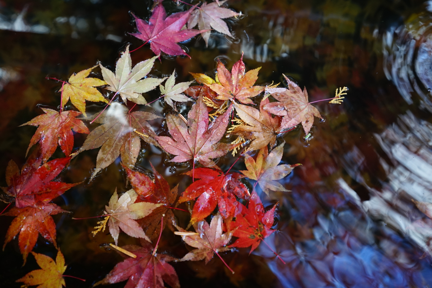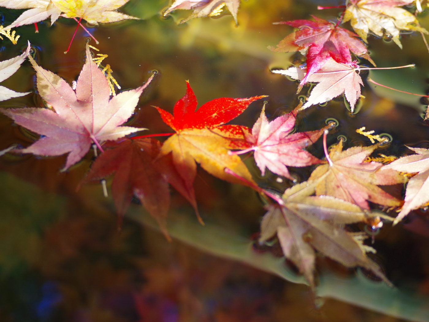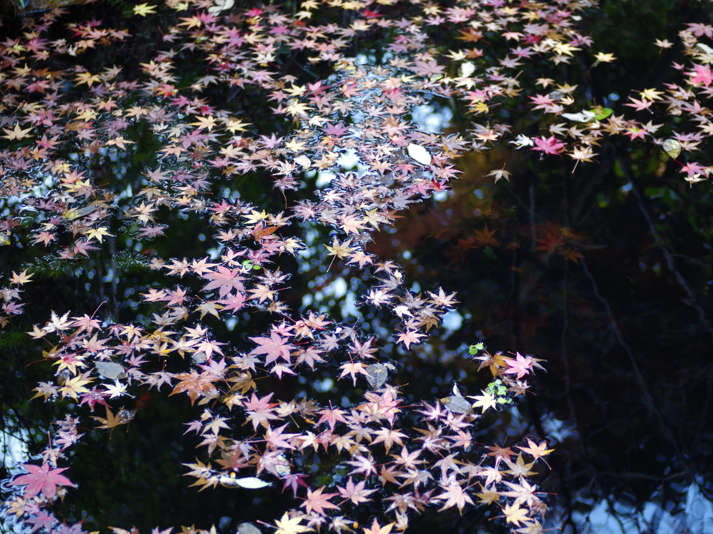 毎日、散歩する三井寺の紅葉シーズンも終わりの時を向かえた。紅葉の絨毯も干からび美しさは消えた。鹿関橋から疎水を見ると葉を落とした桜木が寒そうに秋の終わりを告げている中を観光客乗せた通船が京都へ向けて出発して行く姿を見送った。境内を散策すると御手洗鉢を見ると底には紅葉が水の屈折を通して秋の名残を、そして茶房の池の水面では落ち葉が有終の美を演出してくれる晩秋を楽しんだ。朝の散歩は世情の煩わしさから開放してくれコロナを忘れた。