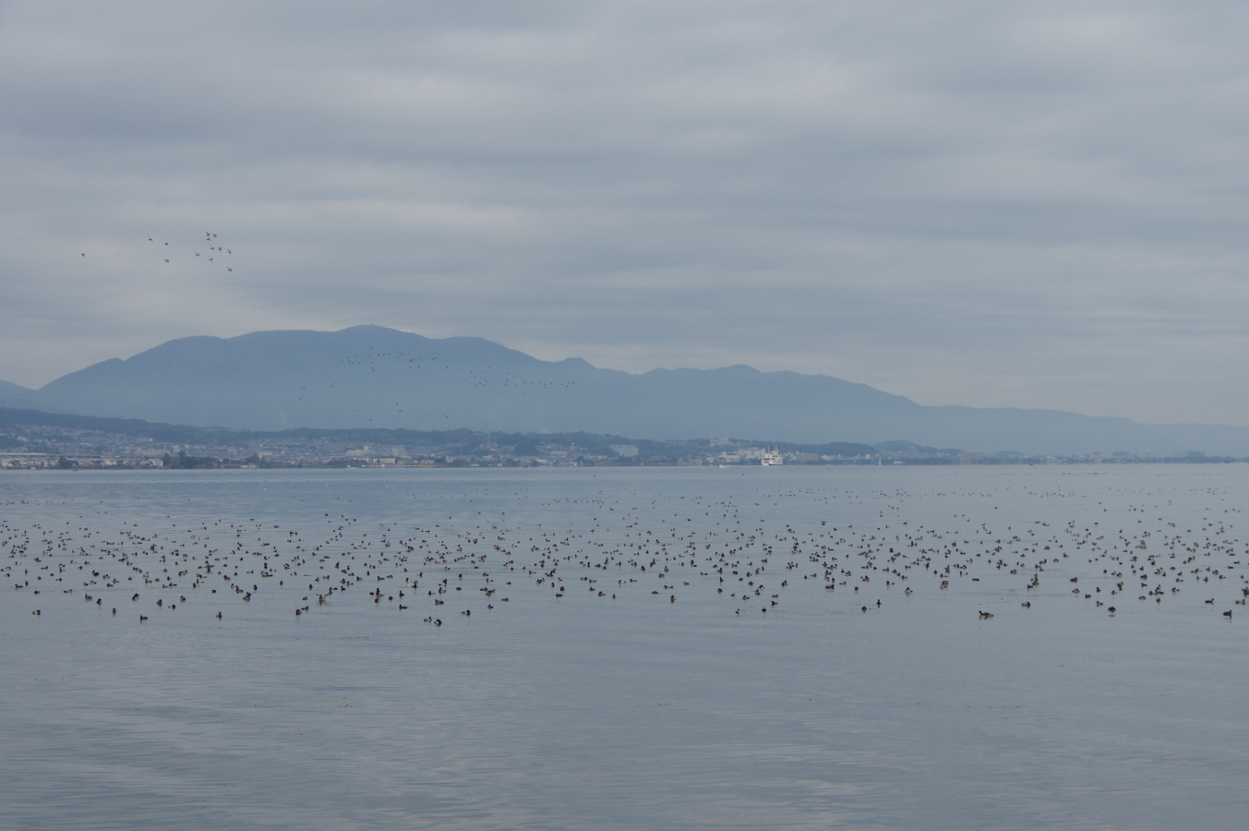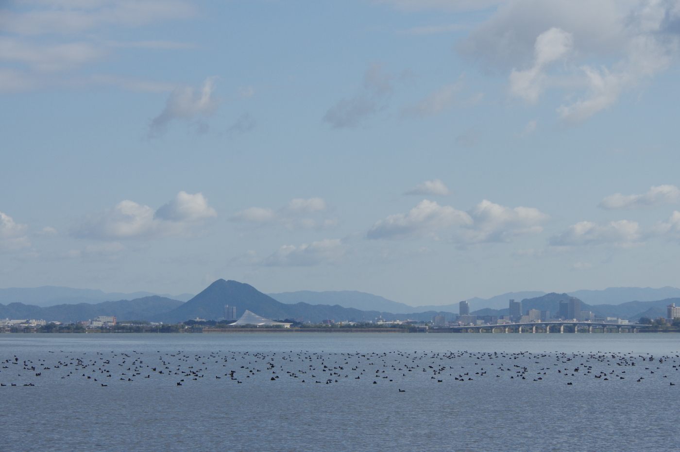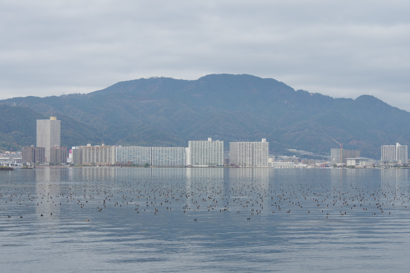 写真は湖上は水鳥の大群が翼を休めていた、三井寺の紅葉もすすんだ。