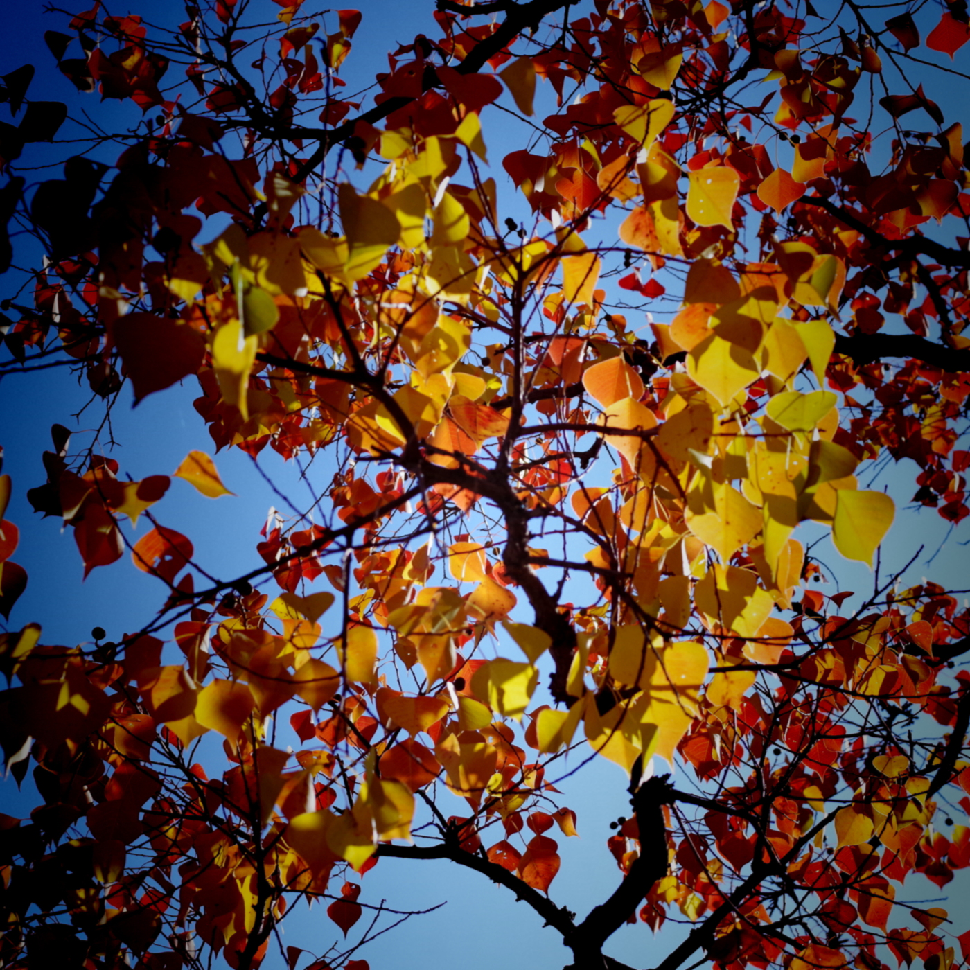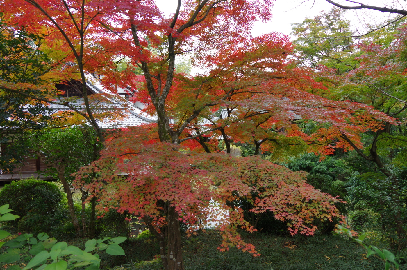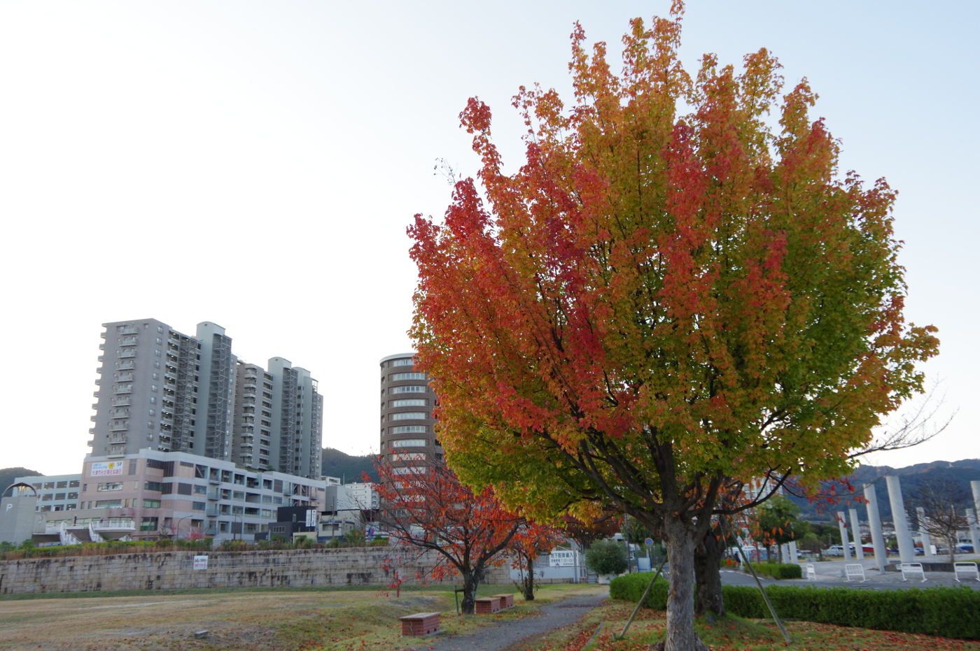 三井寺の秋色も桜紅葉から楓の紅葉にへと一段と鮮やかさを増してきた。湖岸ポタリングで何時も走る遊歩道は琵琶湖を埋め立てて作られた人工湖岸と浜大津から膳所公園まで続く細長い公園は植樹された桜、欅、ハナミズキ、モミジバフウ、ナンキンハゼと紅葉する木が多く秋を楽しませてくれるが気分は複雑だ、ホモ・サピエンスの好み通りに植えられたものばかりで日頃環境問題を考えているから不自然さを感じるからだ。昨夜NHK大津放送局が湖岸の紅葉を紹介していた。紅葉も落ち葉が湖岸を彩っている風景は素直に美しいとおもいながら写真に撮った。紅葉を眺めていると、美しい葉を見ていても美味しさや食欲を感じないの何故と・・・食す事が出来る果実や木の実の色合いは美味しそうに感じる、柿や蜜柑,林檎、桃、苺、葡萄らの色合いは長い時間をかけて、ホモ・サピエンスが進化する中で美味しい色を脳に記憶していったからではとおもった。そして美しい紅葉を見ても食欲が湧いてこないのは食べられない事が分かっているからだと、美しい紅葉が映える景色を見ながら深呼吸すると肺が美味しいと言っているように感じた。でも美味しい風景とは言わずに美しい眺めと言う方が余裕をもって景色を楽しめるからとおもった。