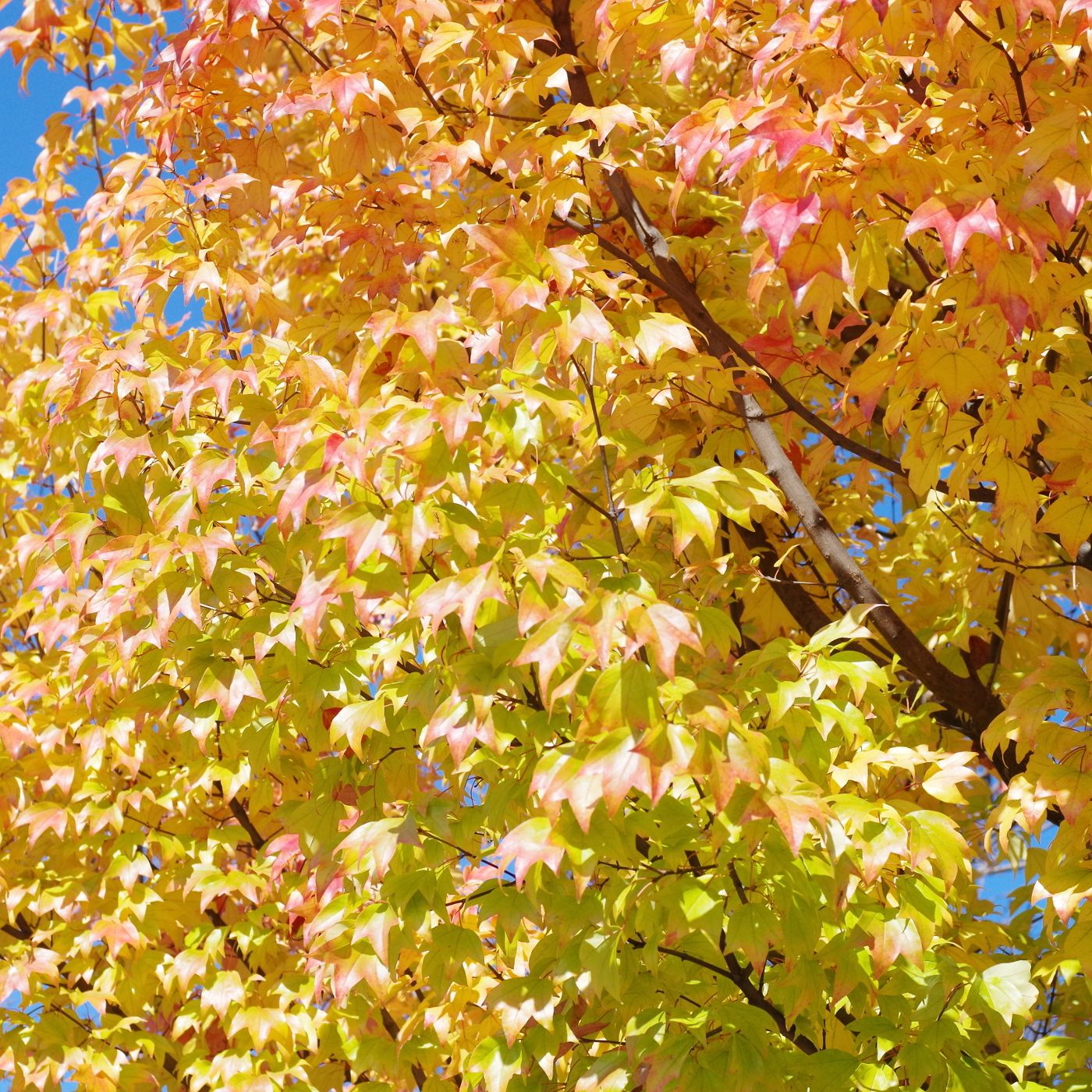 秋晴れの中、湖岸ポタリングで湖岸の紅葉を楽しんだ。打出浜ではナンキンハゼの紅葉を見ながら深呼吸すると紅葉に染まった空気が肺を満たすと少し胸が弾んで元気が出るように思った。でも秋になると何故、木々は紅葉するのかという問題を・・以前テレビ番組のチコちゃんで葉っぱがクビになるからと言っていた事を思い出した。ホモ・サピエンスが秋の紅葉を楽しんでいるが人間社会に置き換えると、会社の存続を考えて授業員のクビを切って行く行為と同じ仕組みだ、自然界では冬になると木が葉を維持できるエネルギーと採算が取れなくなり、やむ無く葉への栄養源をカットしてしまうから葉は落葉へと進む過程での科学変化でアントシアニンが増え緑の葉が赤くなるとパソコンで調べて分かった。うむ、なるほどと人間も会社をクビになって自棄酒を飲んで赤くなった状態が紅葉ではと考えると悠然と紅葉を楽しむ気にはなれない、少し悲しい紅葉シーズンに見えてくるが、木は経営者で冷徹な社長でもあるのだ。自然界では非情とも言える行動が日常行われていることを知ると只、自然の美しい一面だけを捉えて判断することは止めて正しく自然を理解しようと落ち葉を眺めた。落ち葉は累々と並ぶ死体ではなく栄養分として生命の再生への重要な役割を果たしているのだと、おもいながら紅葉と落ち葉が自然界の凄さを感じさせてくれた。