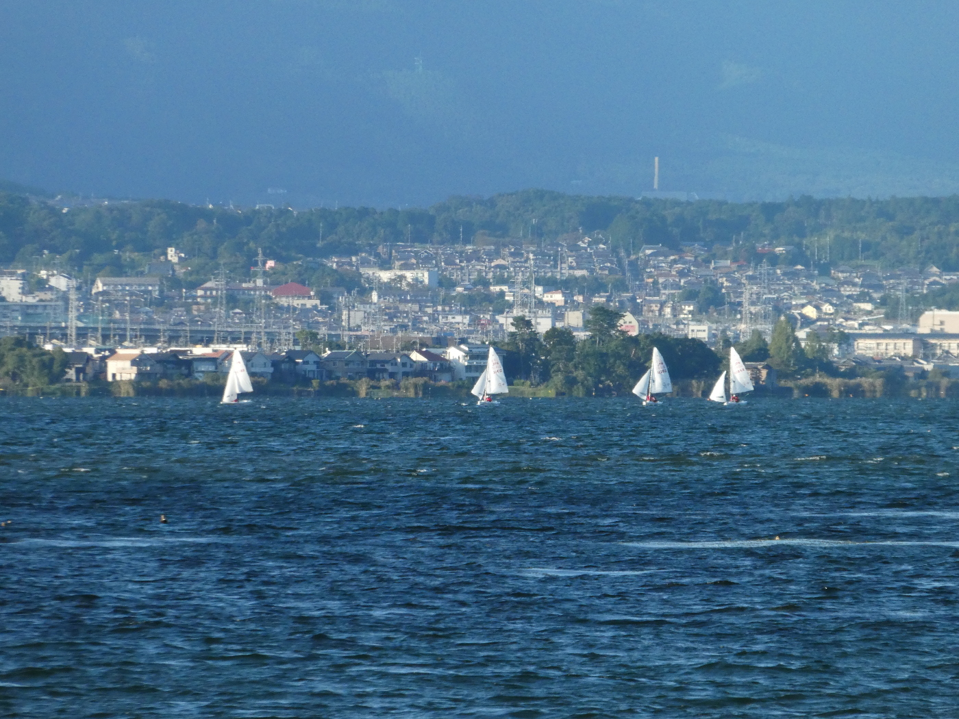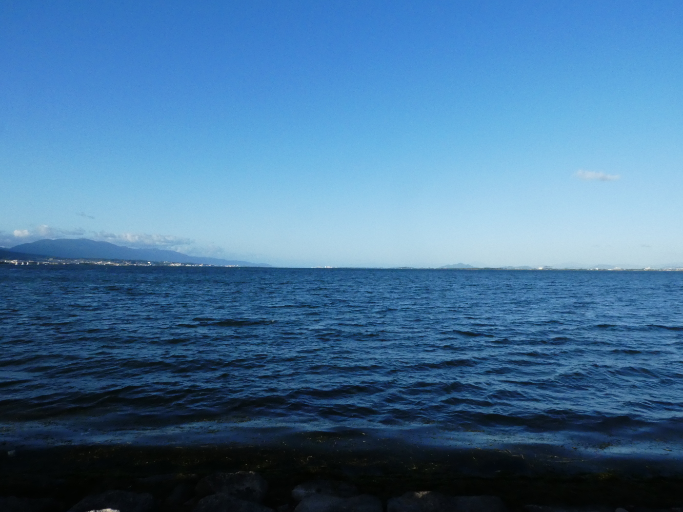 大津の町は静かな佇まいが続いている、今年はコロナ禍で唯一の秋の賑わいを彩る大津祭も中止と決まり静かさが一段と増した。膳所の町も西武百貨店が閉店して、ときめき坂の人通りも少なくなった。浜大津のアレックスシネマも休館になり、此のままでは町の将来が心配になってきた。朝の散歩で通っった長等小学校も運動会の準備がされているが学年別と聞いた。コロナ感染者は増え続けるばかりで、終息の気配は感じないとマスクやアルコール消毒も続けて行くしかないと気を引き締めた。今日の湖岸は少し肌寒く、今年も秋は短いのではと琵琶湖を眺めると琵琶湖大橋では蜃気楼現象が見られた。そして少し水位が下がった琵琶湖は台風の雨を待っているのではと思った。