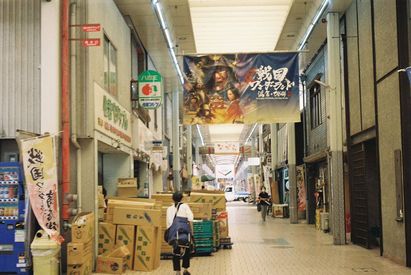 今日は湖岸ポタリングはお休みで琵琶湖が見れず残念な日となった。写真は以前に撮った商店街のフイルム写真を載せることのした。