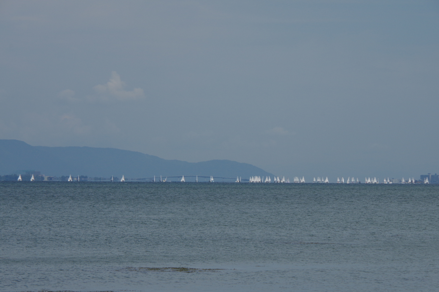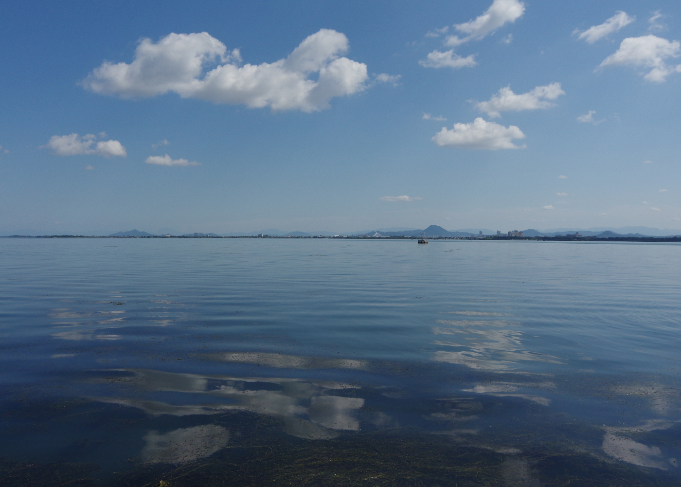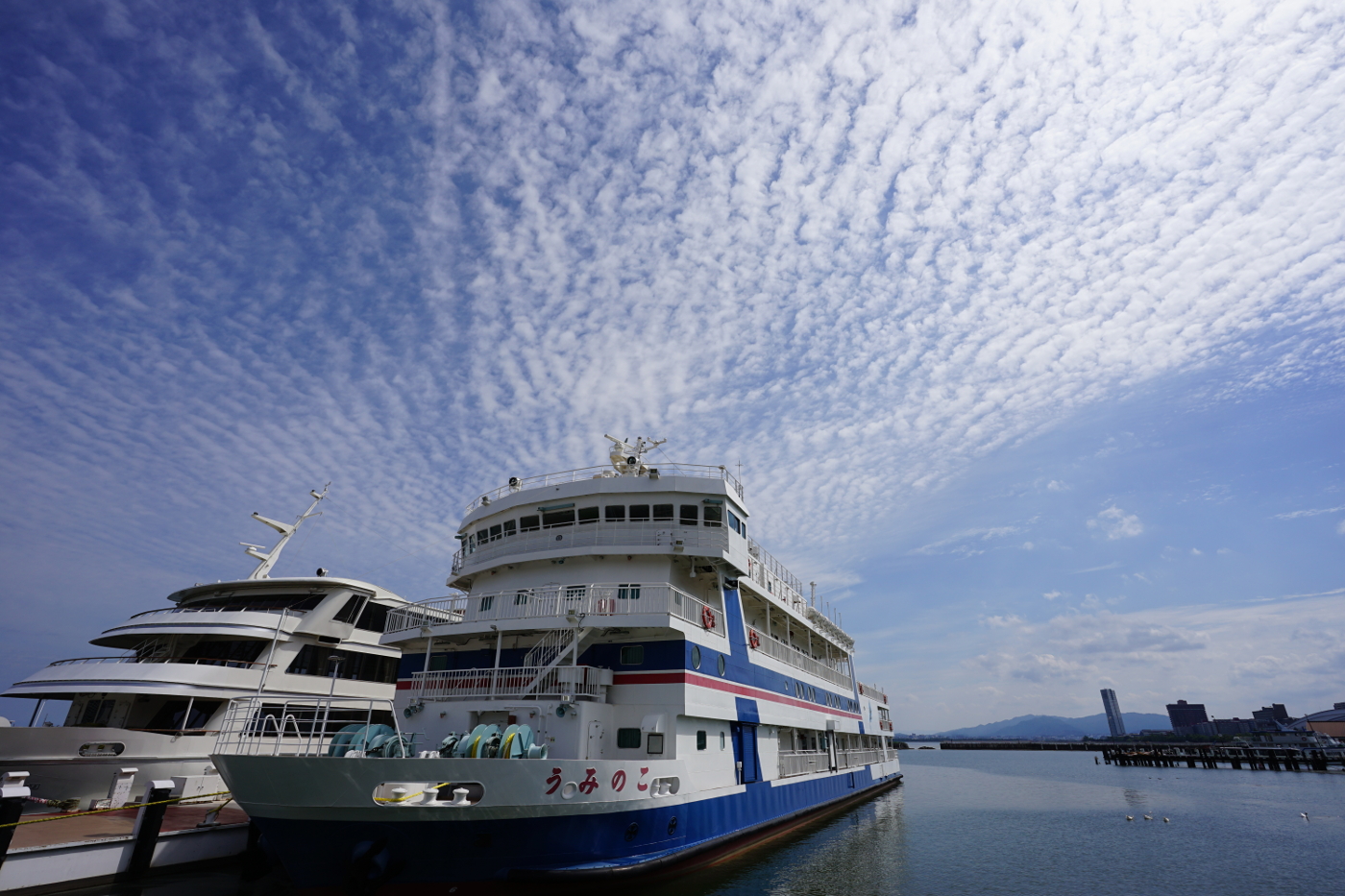 心配された、台風12号は進路を東寄りに変えた所為で滋賀県には影響がなさそうだ。湖岸ポタリングは今日も好天で青空には羊雲が見えた。そして台風が運んできた暑さで風も少し暖かく感じた。浜大津港ではミシガン号に続き学習船うみのこ、が出港、そして西大津のマンション群を背景に急旋回する姿には迫力を感じながら写真を撮った。内燃機関とシャフトで繋がれたスクリュウ時代と違いモーターで駆動するスクリュウは自由に角度が調整できるから急旋回も簡単に出来ると感心しながら学習船を見送った。そして長い突堤の見える湖岸へ移動した。突堤に設けられた丸い穴を見ていると琵琶湖の水位が低くなった事が一目瞭然だ。台風が来なければ1994年の琵琶湖大渇水の様にならなければよいがと心配になってきた。打出浜湖岸から見る湖面には少しアオコが見られ琵琶湖の水質が心配だ。湖上ではスーパーかいつむり号が除草作業をしているが水草は去年よりも少いのではと琵琶湖を眺めた。