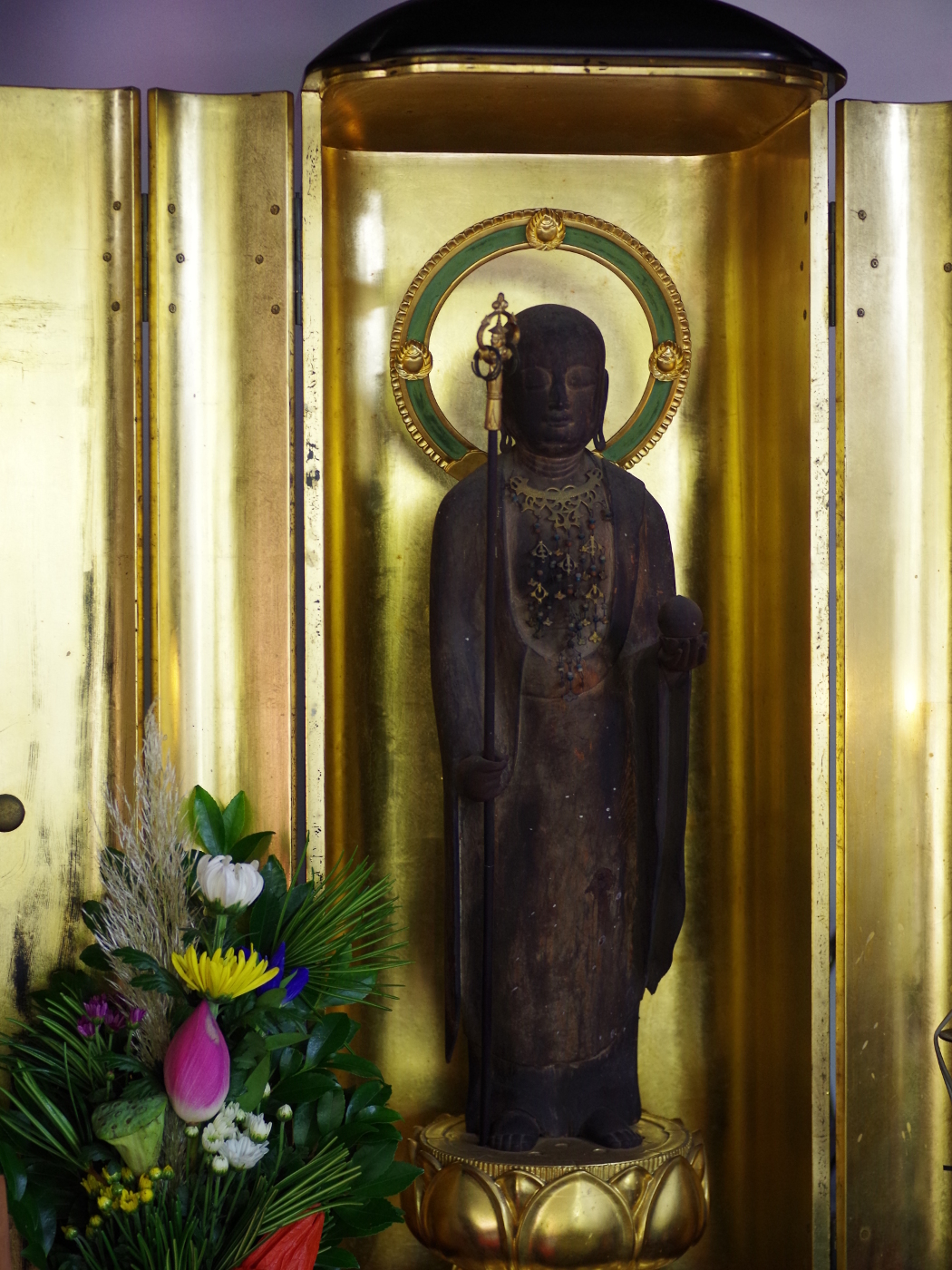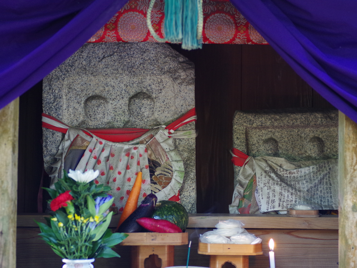 今日は地蔵盆、本来なら各町内ではお地蔵様が祀られ多くの子供と町内の人がお地蔵様の元に集まって楽しく地蔵盆を過ごすのだが今年はコロナ禍で中止となり寂しい日となった、でも我が家のお地蔵様は三井寺より尼僧にお参りいただき地蔵盆を行った。僕の生まれる前から二体の石のお地蔵様が我が家の庭に祀られていて信仰深き祖母が大切に守ってきたお地蔵様だ。お地蔵様は威張ったところがないので僕も素直に手を合わせ、感謝した。そして今日の朝の散歩では三井寺の境内にあるお地蔵さん巡りをさせてもらった。観音堂の東、表坂石段を少し下ったところには中坂地蔵(世継ぎ地蔵)が祀られた、お堂で優しい、お顔を拝観させていただいた。彩色された地蔵菩薩と光背の美しさに魅了されながら写真を撮らせてもらった。次は境内の山道を少し登ったところには、おせん地蔵の名前で有名なお地蔵様が祀られている、方形の石に二体の地蔵様が彫られたものが二つ小さな祠に鎮座されていた。仁王門側の釈迦堂には延命地蔵様が祀られ朝から法要が行われていた。今日は地蔵盆にちなんで我が家と合わせて五ヶ所のお地蔵様にお参りさせてもらった。久しぶりに祖母を思い出した。僕はおばあちゃん子であったと、80歳の爺が思い出し少し笑った。