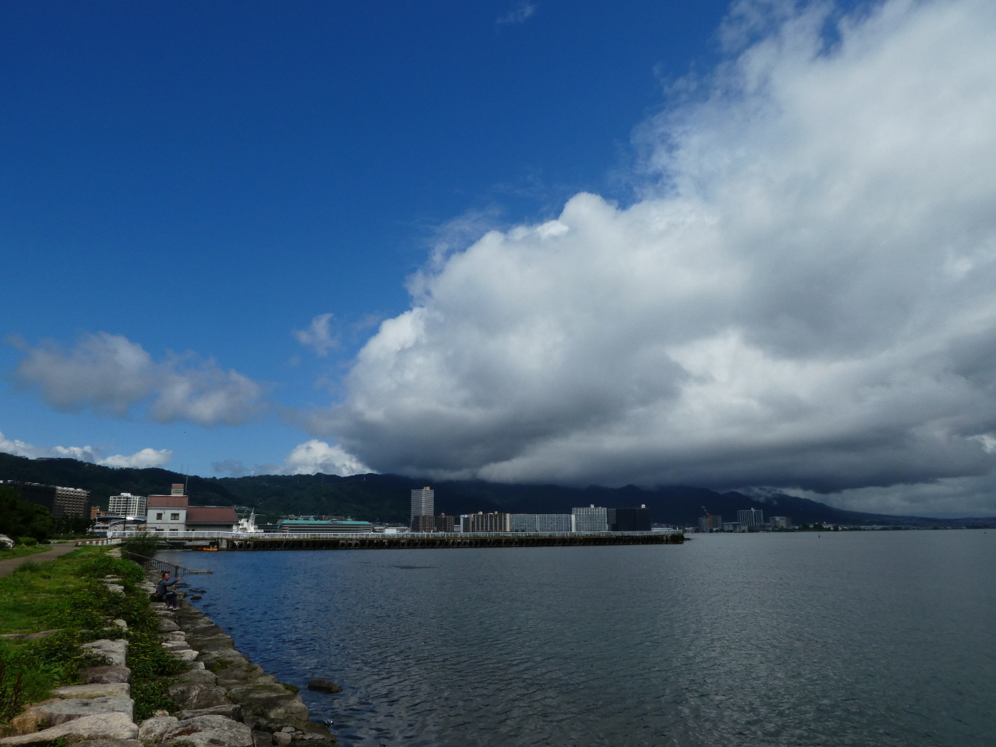 テレビから流れるニュースは相変わらずコロナ感染が増え続けている状況を伝えている、そして最上川が氾濫の映像が被害の大きさを映していた。今年の梅雨は長く大雨に寄る被害も南から北へと広範囲に及んだ、温暖化による異常気象は収まることがないのかと台風シーズンが心配だ。夕食後、窓を見ると空が明るく見えた。急いで自転車を出して湖岸へ向かった。打出浜湖岸から梅雨明けを予感させてくれる雨後の琵琶湖を見た。明日は梅雨明けになるのではと期待しながら湖岸を後にした。