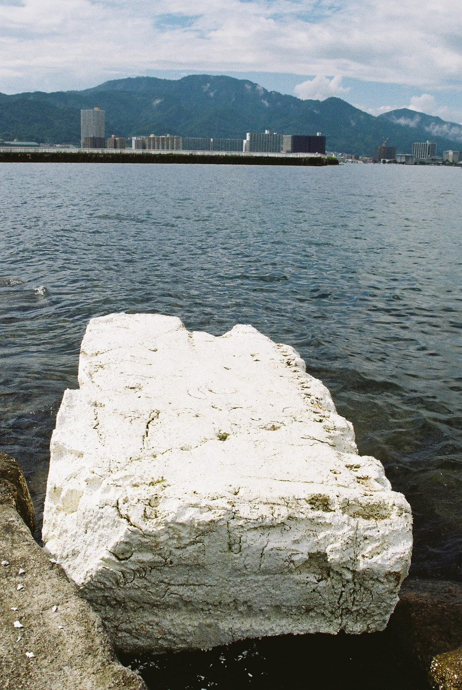今日は天気の爺の見立てでは梅雨明けではと思いながら浜大津湖岸から琵琶湖の眺めを楽しんだ。比叡山に架かる積雲も高気圧?に押されているようにも見えた。長かった梅雨も終わりの時を向かえたと思うと少し気分が明るくなった。でも新型コロナウイルスの勢いは増すばかりで関西でも注意喚起が必要になってきた。学校も夏休みに入る、これを時期にロックアウトとまで行かなくても移動の制限はした方が良いのではと思った。人間社会に起きる問題をゆっくりと考える機会でもあり環境問題はコロナ以上ではないかと考えるのは未来に生きる人達の言葉が気になるからだ。今日の朝日新聞(朝刊)で、バリの「グレタ世代」臆さず黙らず、の中でインドネシアのバリ島で美しい自然にそぐわないプラスチックごみの多さに心を痛め、なくす活動を始めた少女メラディ・ワイゼンさんの話を読んだ。子どもだってリーダになるのに年齢は関係ないとグレタさんらと活動を進めている、政治の中枢にいる大人たちが彼女らの意見を真摯に受け止め環境問題に取り組むべきと思った。そして今日も琵琶湖浜大津湖岸には大きな発泡スチロールの白い棺の様にも見えるゴミは片付けられる事もなく漂っている光景は行政の無感心か怠慢かわからないが、琵琶湖の環境問題を大きく取り上げている滋賀県の実情はいかがなものかと白い大きな発泡スチロールはホモ・サピエンスの棺かもしれないと改めてフイルムカメラで写真に撮った。