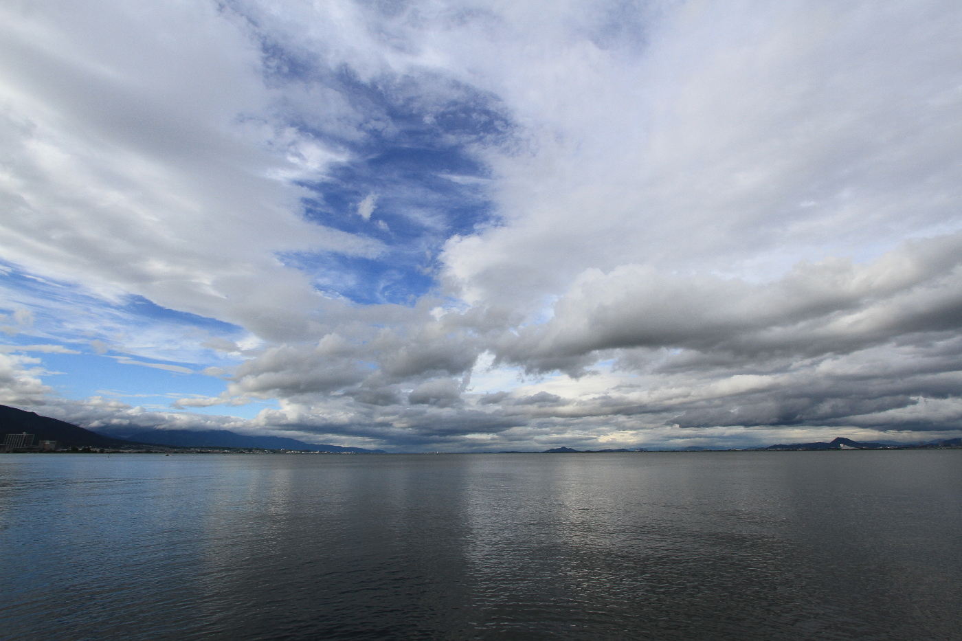雨後の琵琶湖は何時も素晴らしい水の循環風景のクライマックスを今日も見せてくれた。打出浜から見る琵琶湖上空には積雲が高度3000フィートで漂っている光景をワイドレンズを着けたデジイチのファインダーから見るとセスナで飛んでいるような感覚になった。今日も天気の爺にとって幸せな日になったと感謝した。自然の動きは嘘、偽りのない世界だと今日もテレビから流れてくる人間界のニュースを聞いていると嘘と偽りで固めたとしか思えない、安倍政権下での諸問題の数々、そして命を掛けて訴えた赤木さんの森友学園をめぐる裁判は赤木俊夫さんの死の真相を求め裁判を起こした妻の訴えには、政府は真実を語るべきだと思った。美しい天気の流れを見ていると、再読をしている「地球幼年期の終わり」アーサー・C・クラークのSF小説に出てくる未知の宇宙船団は遠い星からきた超知性体によりニンゲンの武器(核兵器)は全て無能化されて地球は一応平和に・・・未だに地球上で核兵器や武器に国の威信をかける実情や、国同士の紛争は止まず、自然災害や疫病に悩まされている現状を見ていると、ニンゲンでは解決できなければ遠い星から超知性体にお出まし願いたいと思うこの頃だ。そしてSF的な予感を感じる雲の動きを見ているとUFOが現れるのではと期待した。