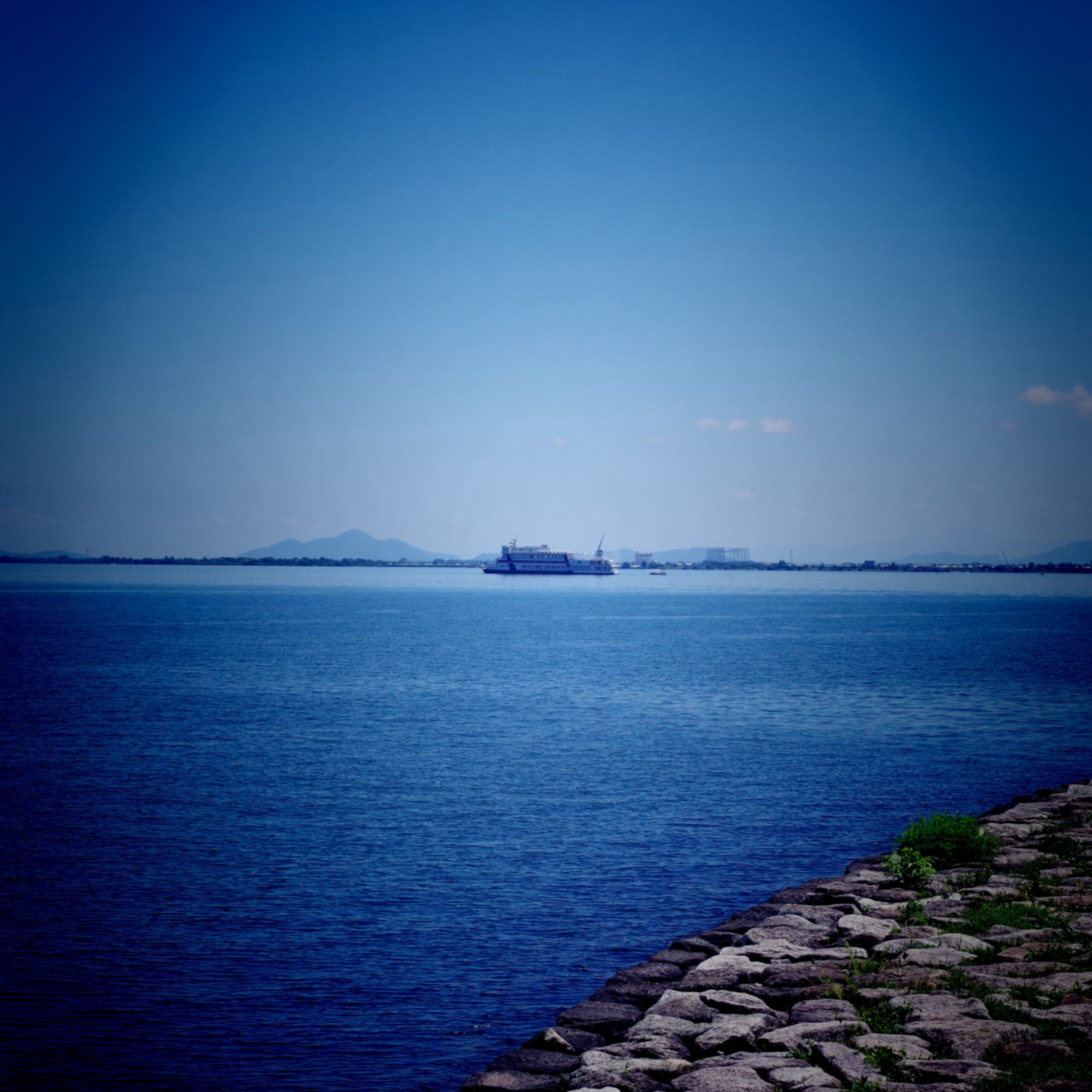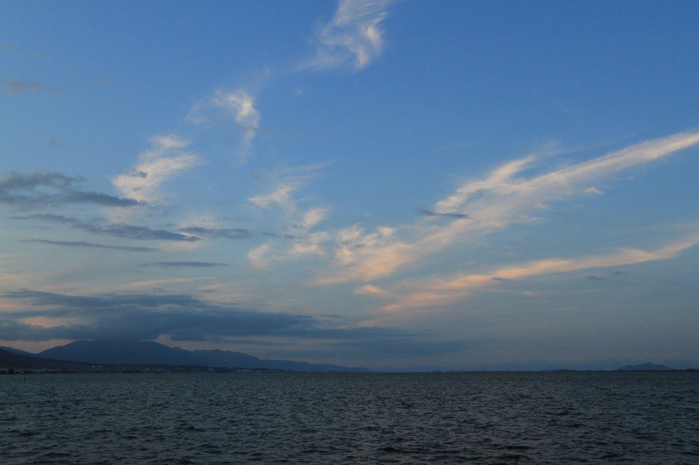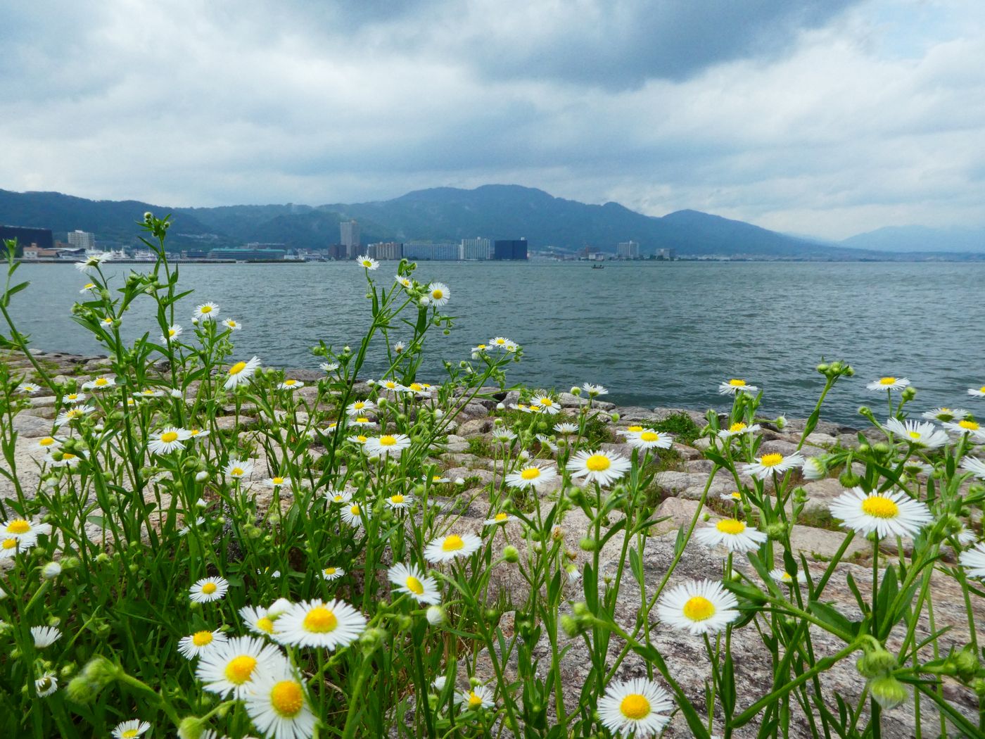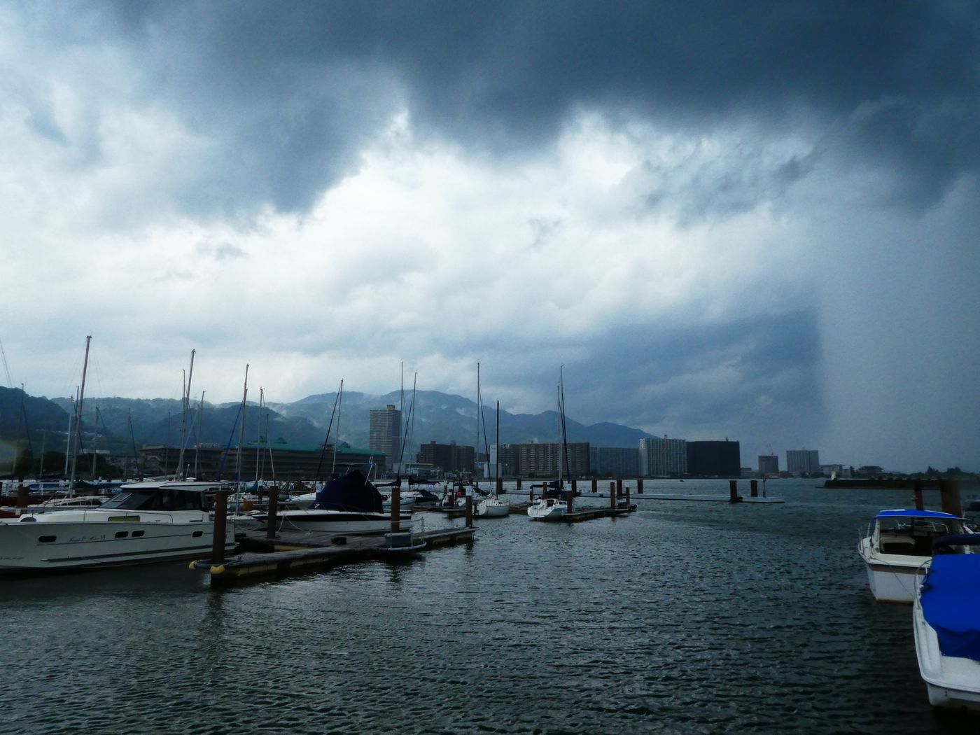 今日はドコモへ料金設定を見直しに出かけた。コロナ対策でマスク姿の店員との応対は初めてだ。顔の様子が見えないが親切な対応だったが切り替え時期までそのまま使用するのが得策と言われ帰宅した。IT時代の通信費用を真剣に考えた事は無かったが毎月、映画10本ほど見られる費用を払っているのかとおもうと意外に高いと思った。そしてITに管理されている現状から解放されるにはケイタイを手放すことだと考えた。ドコモではキャッシュレス時代の便利さを説明され,スマホにアプリを入れてもらったが、買い物と言っても近くのドラッグストアとスーパーそして小川酒店ぐらいでは使用することもないと思った。午後は湖岸ポタリングへ出かけた。浜大津港から琵琶湖を見ると雨の姿?と言っても雨雲が垂れ込めた光景だ。其の付近で降っている雨の美しさを楽しんだ。そして垂直に雨の部分が区切られている様に感じる空間に立って見たいと思った。雨の境は子供の頃から体験したいと思っているが体の半分だけが雨に濡れることができるのではと湖上彼方の垂直に別れた雨の姿に見入った。雨の姿を楽しんだ所為で本当の雨に出会った。雨具は上半身のみでズボンは濡れるも雨の感触も楽しいと自転車を走らせた。