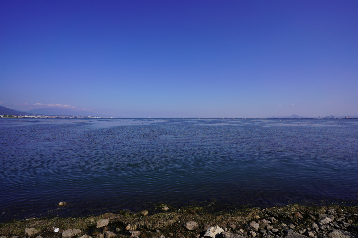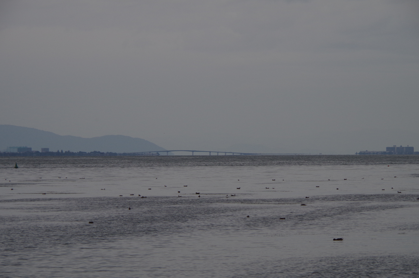 打出浜湖岸か琵琶湖を眺めているとモーターボートに驚き飛び立つ水鳥の数は去年よりも少なく思った。